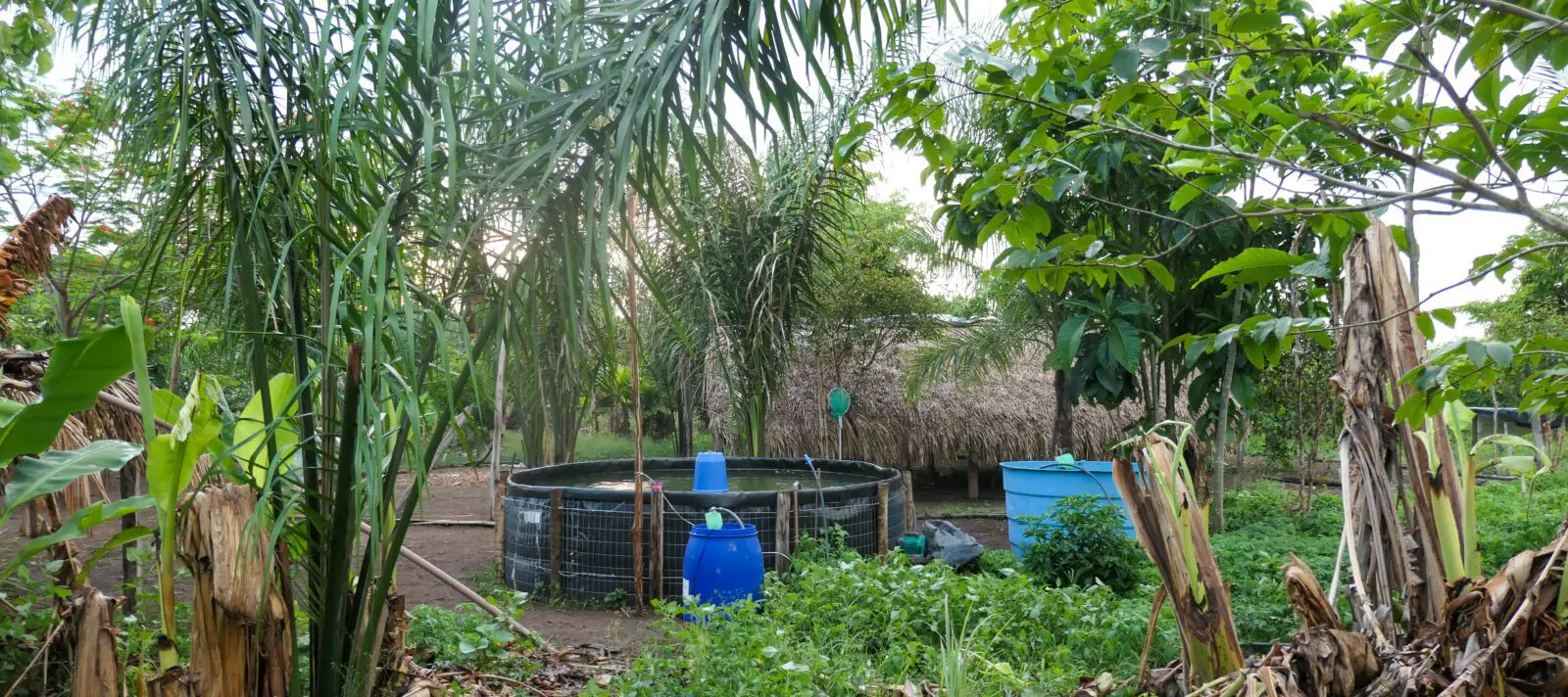 Le système comprend un bassin de pisciculture, un potager avec légumes et fruits, une petite installation de compostage ainsi que l’élevage de petits animaux – poules et porcs. Le cœur du dispositif est l’élevage de poissons dans un bassin de 10 000 litres. L’eau riche en nutriments sert à irriguer le champ voisin. Les résidus solides issus de la nourriture et des déjections des poissons sont quant à eux utilisés comme engrais naturel, enrichissant le sol en nutriments. Les légumes et les fruits sont cultivés selon un agencement réfléchi : les plantes plus grandes, comme les papayers, les bananiers ou le maïs, offrent de l’ombre aux cultures plus petites. Ce que la famille ne consomme pas elle-même peut être vendu, ce qui génère un revenu supplémentaire. Après seulement un an, les premiers résultats sont visibles : « Les bananiers arrosés avec l’eau de la pisciculture sont plus grands et le maïs pousse plus vite », observe Yaiku. Les poissons aussi seront bientôt suffisamment grands pour être consommés ou vendus.
