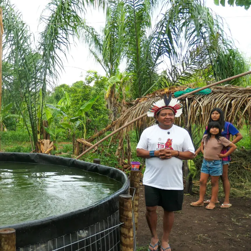 Conscient que la sécurité alimentaire de sa famille était menacée, Yaiku a commencé à chercher des solutions pour s’adapter au réchauffement climatique et aux périodes de sécheresse. Il a alors découvert un modèle agroécologique prometteur développé par l’institut public de recherche Embrapa : le « Sisteminha » (qui signifie « petit système » en portugais). Il a contacté l’organisation partenaire OPAN (Operação Amazônia Nativa) et, ensemble, ils ont lancé au début de l’année 2025 une phase pilote.