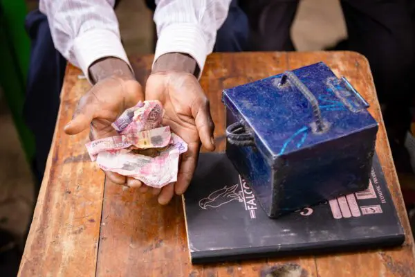 Lors des réunions hebdomadaires, le groupe de solidarité utilise cette boîte comme caisse d’épargne.