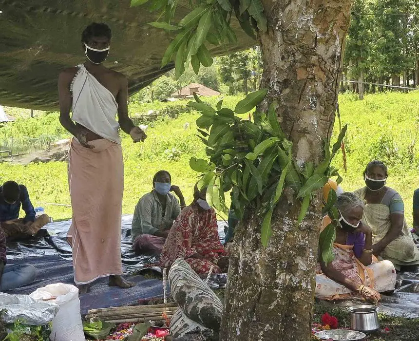 « Le peuple adivasi a depuis toujours vécu de la forêt et pratiqué une agriculture durable. Cependant, dans l’État indien du Karnataka, il se voit chassé de ses terres ancestrales en raison de la mise en place de réserves de tigres et de zones protégées pour la faune sauvage. Privé·e·s de leurs liens étroits avec leur terre, leur culture et leur spiritualité, les membres de la communauté sont contraint·e·s d’émigrer en ville pour survivre. Afin de mettre fin aux expulsions et à cette situation tragique, notre organisation SPEDS (Samatha Peoples Education for Development Society) s’est fixé pour objectif de défendre les droits des Adivasis et de les aider à mettre sur pied des infrastructures opérationnelles. Il s’agit avant tout d’obtenir des titres de propriété légaux pour leurs terres. Toutefois, il importe aussi de leur donner les moyens de s’affranchir de l’esclavage pour dettes, car bon nombre d’Adivasis ont dû s’endetter pour survivre.